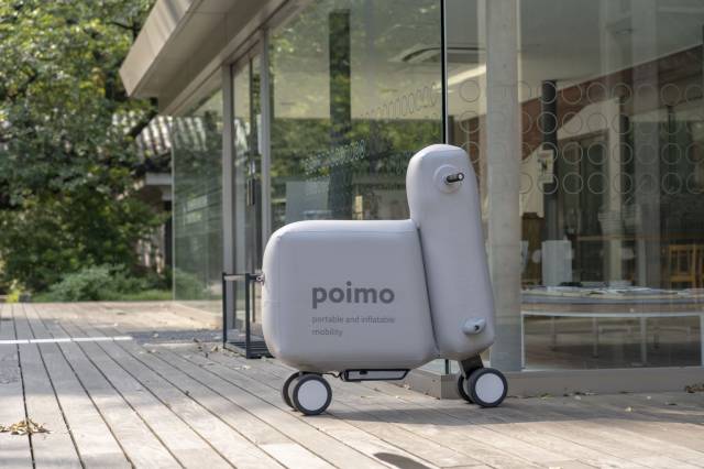 DiÄŸer modellere kıyasla ÅŸimdiden çok ses getiren prototip aÅŸamasındaki Tho Poimo adlı motosikleti çantaya dahi sığdırmak mümkün. TrafiÄŸin ve kalabalığın arttığı günümüzde küçülen bir motosiklet park sorunlarını da ortadan kaldırıyor. Kurulumu çok basit olan modelde, tekerlek ve bataryası harici bir cihazla beÅŸ dakika gibi kısa bir zamanda çabucak ÅŸiÅŸirilebiliyor. Åžu anki ağırlığı 12 kilo olan The Poimo, yetkililer tarafından yapılan açıklamaya göre üretime geçeceÄŸi zaman altı kiloya düÅŸürülecek ve üzerine ÅŸiÅŸmesi için bir hava kompresörü eklenecek. YumuÅŸak yapısı ise çarpışma anlarında hava yastığı görevi görebiliyor.